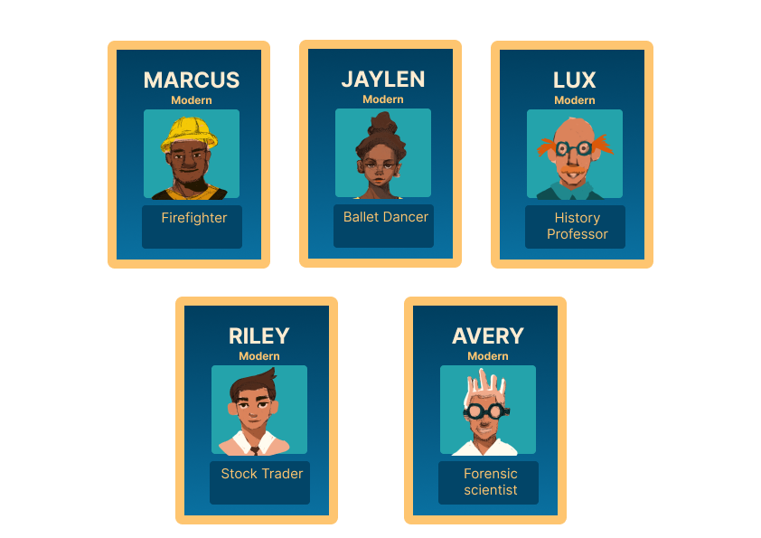 We started off with simple character cards in our first iteration for both games. However, as we tested our prototype, we realized having too many cards swayed players to play a table top RPG game. So in our middle iterations, we went back to using character sheets with text to explore the possible LARP interactions in the game.